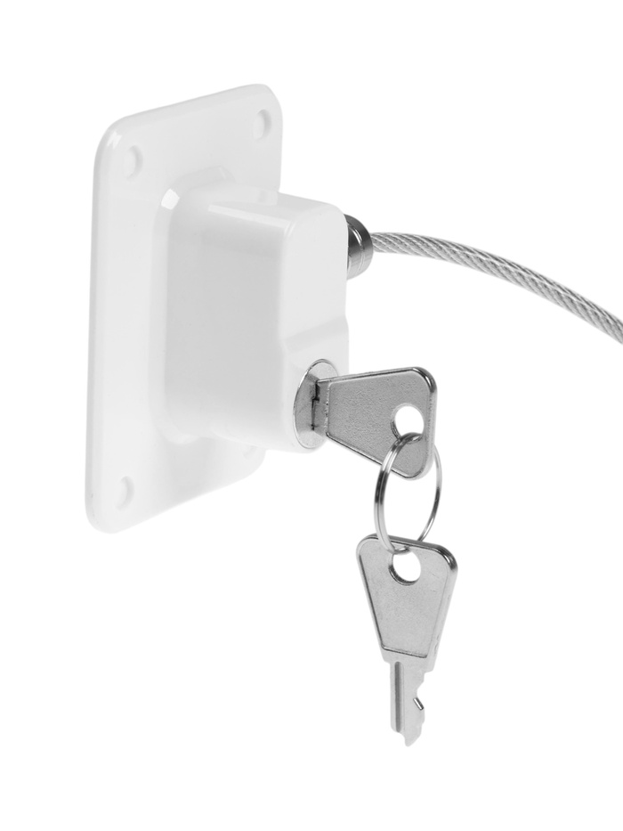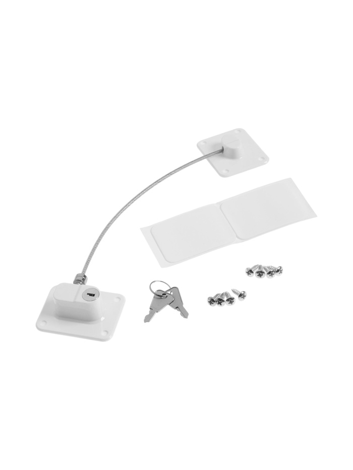 Самоклеющийся блокиратор для окон с тросом — устройство для ограничения открывания створки. Пластиковый корпус белого цвета крепится к раме и створке на самоклеящуюся основу. Длина троса 18 см позволяет открыть окно для проветривания, не отключая блокиратор. Простая установка без сверления подходит для пластиковых и деревянных окон.