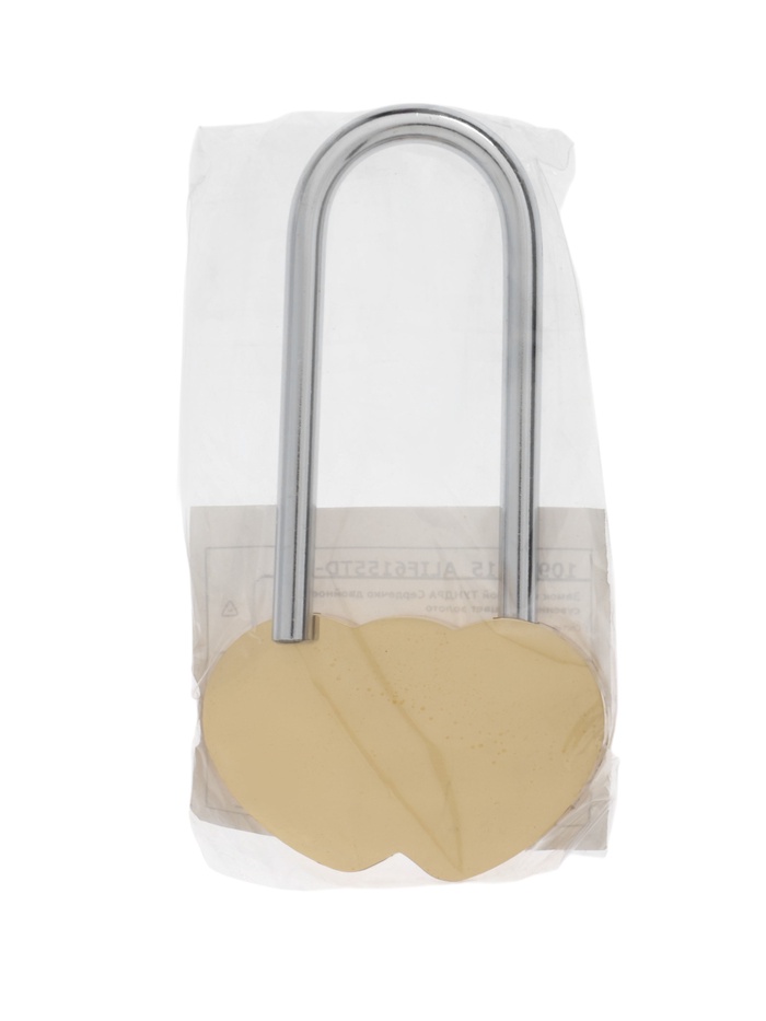 Сувенирный навесной замок «Двойное сердечко», золотой — декоративное изделие в виде двух переплетённых сердец. Металлический корпус золотистого цвета символизирует единство и любовь. Удлинённая дужка позволяет вешать замок на перила мостов, ограждения и другие конструкции. Автоматическое запирание фиксирует дужку при нажатии без ключа. Идеальный подарок для свадеб, юбилеев и романтических событий.