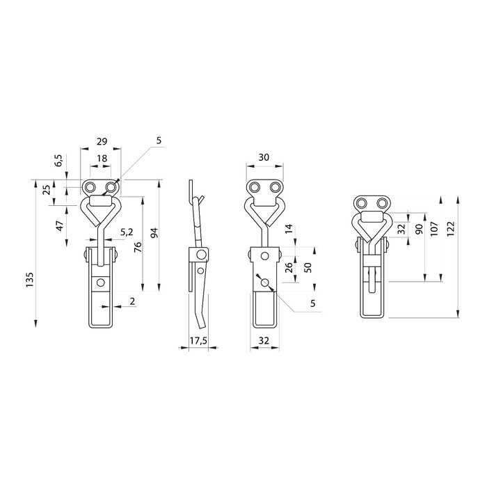 Технические характеристики Замок защелка на ящик Z06, 4 шт.