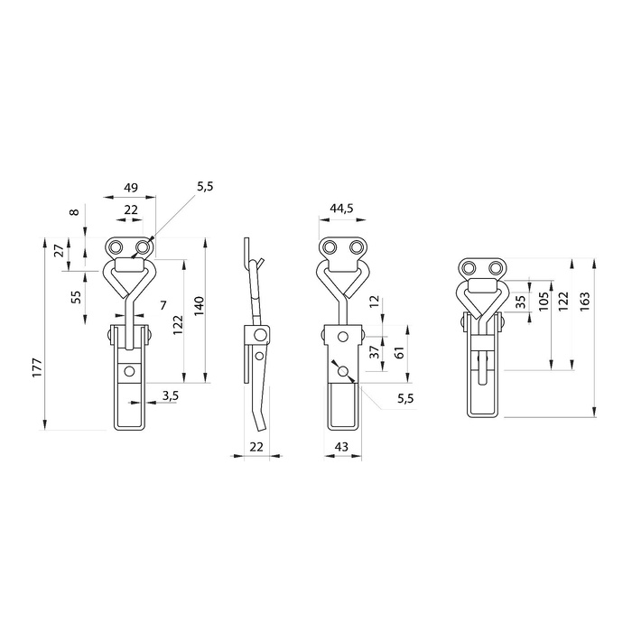 Технические характеристики Замок защелка на ящик Z07, набор 4 шт.