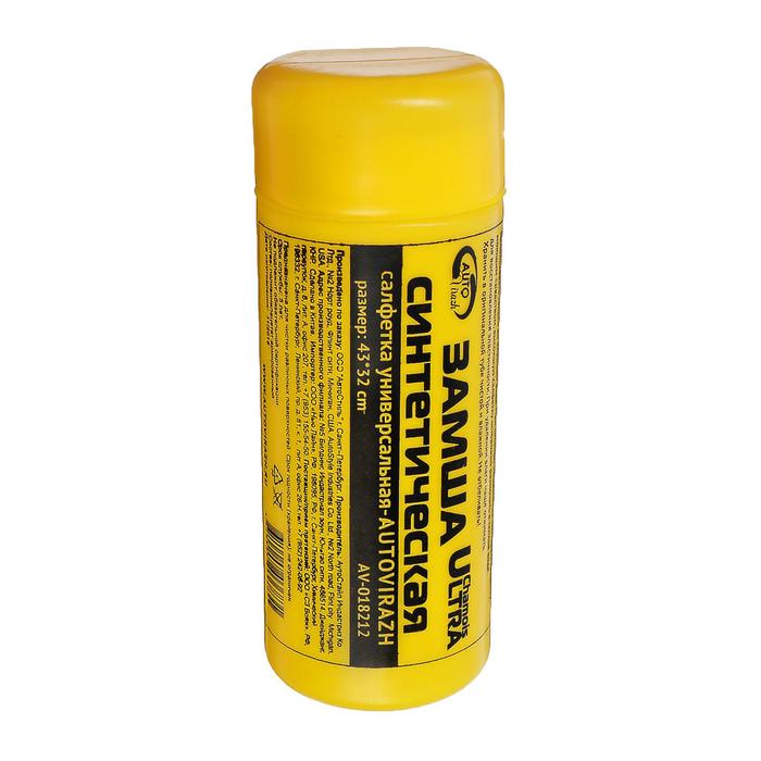 Замша протирочная в тубе Autovirazh AV-018312, 43×32 см — гарантия чистоты вашего автомобиля! Материал с лёгкостью впитывает основную влагу, оставляя поверхность чистой и сухой. Искусственная замша помогает очистить покрытия без применения химических средств от пыли, пепла, пуха и других различных загрязнений, не оставляет пятен, ворса и разводов. Эффективна для стёкол, зеркал, оптики и для сушки лакокрасочного покрытия кузова. Также является идеальным решением для дома: вы можете быстро привести в порядок окна, кафель и хром. Удобная упаковка-тубус позволяет хранить салфетку во влажном виде.