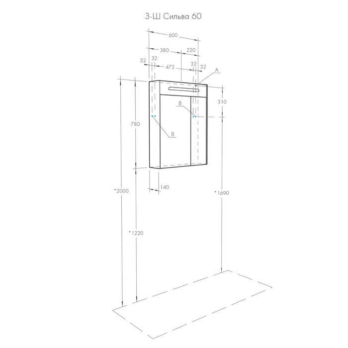 Технические характеристики Зеркальный шкаф AQUATON Сильва 60 дуб полярный 1A216202SIW70