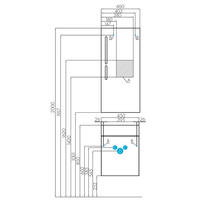 - Размер (Ш х В х Г): 460 х 1000 х 32 мм.