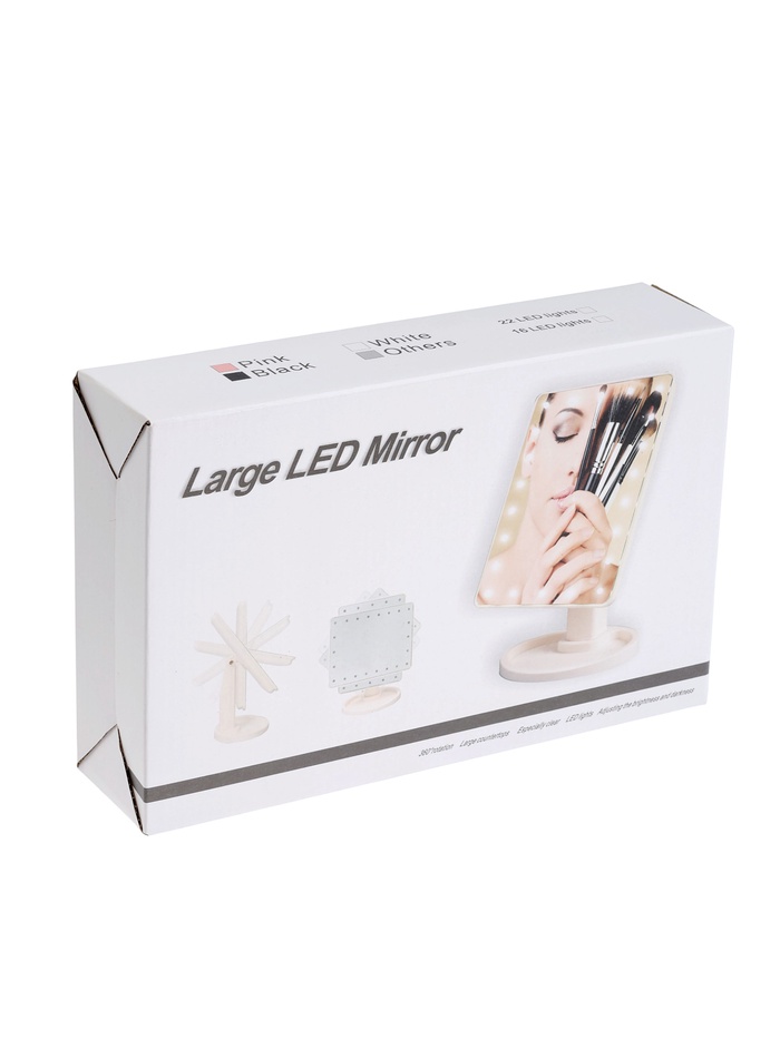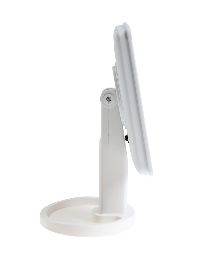Настольное зеркало с подсветкой обеспечивает равномерное освещение для макияжа и ухода за кожей. Сенсорная кнопка включает 22 светодиода, создавая мягкий свет, а компактный размер и белый корпус делают зеркало удобным для любого интерьера.