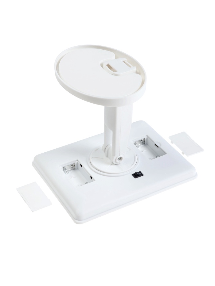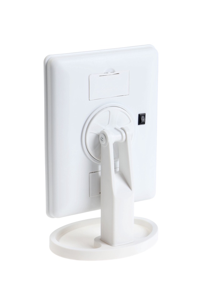 Зеркало удобно использовать дома, автономное питание позволяет разместить его в любом месте, а устойчивое основание обеспечивает надёжность при эксплуатации.