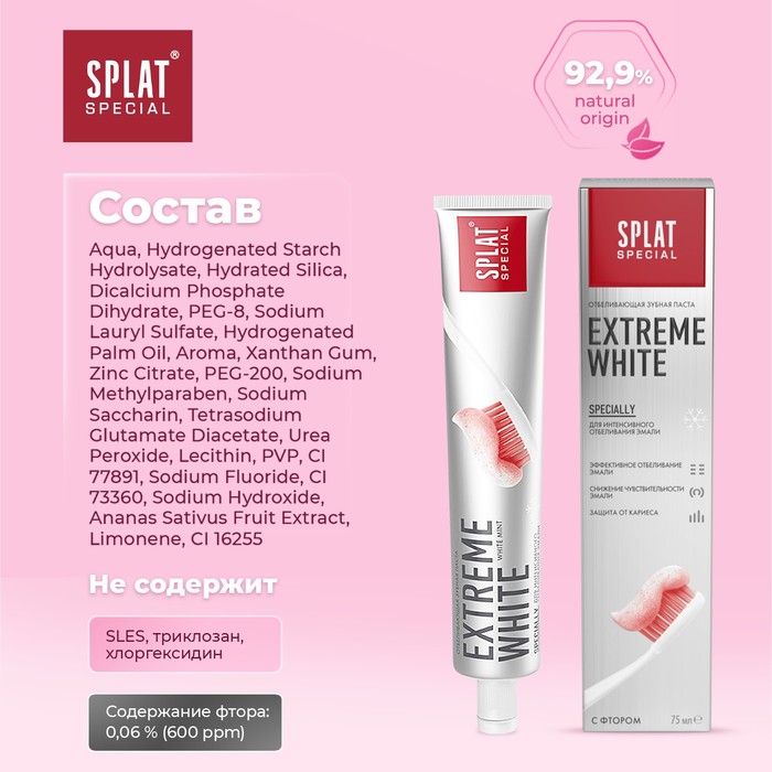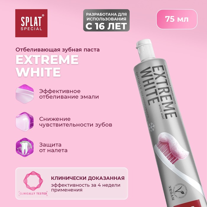 Зубная паста SPLAT Special «Экстра Отбеливание» (EXTREME WHITE) – для интенсивного отбеливания эмали в домашних условиях.